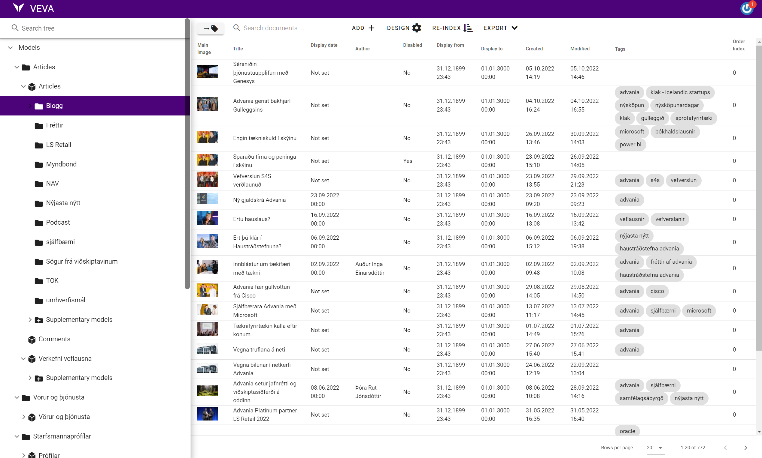 The Documents module allows users to define content types for all kinds of content and to manage content of these types.